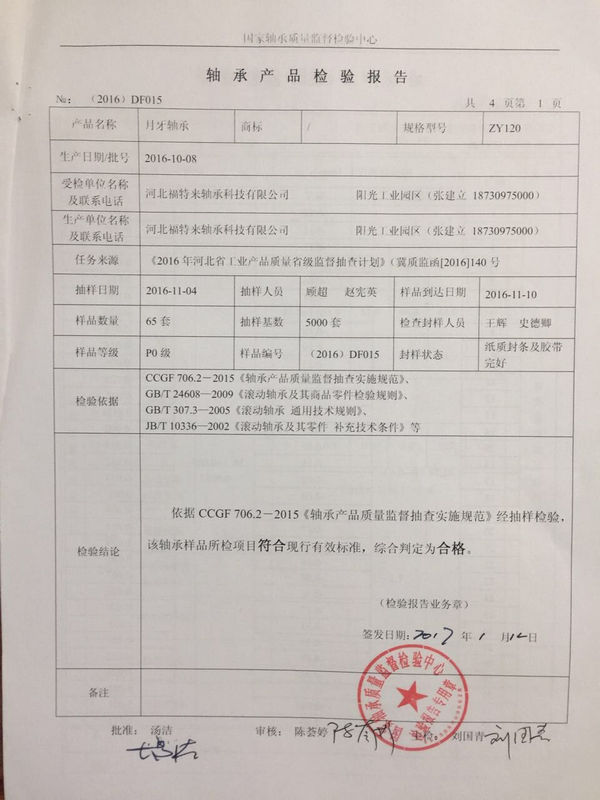 河北富特來軸承科技有限公司產(chǎn)品質(zhì)量通過國家軸承質(zhì)量監(jiān)督檢驗中心監(jiān)督抽查